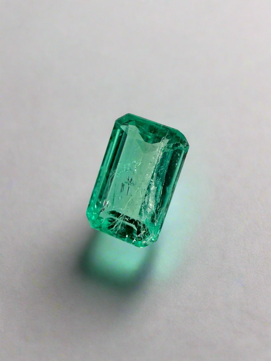 0.77 Carat 7x4.5 Glowy Loose Colombian Emerald-Emerald Cut