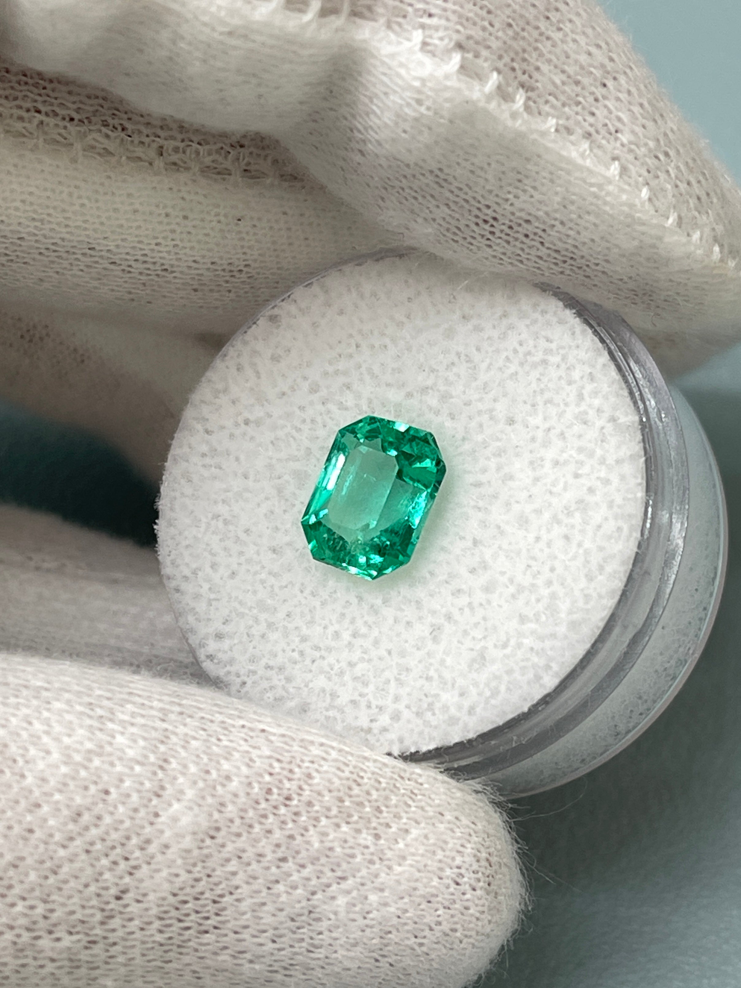 1.92 Carat 8.3x6.6 Ultra Glowy Bluish Green Natural Loose Colombian Emerald-Emerald Cut